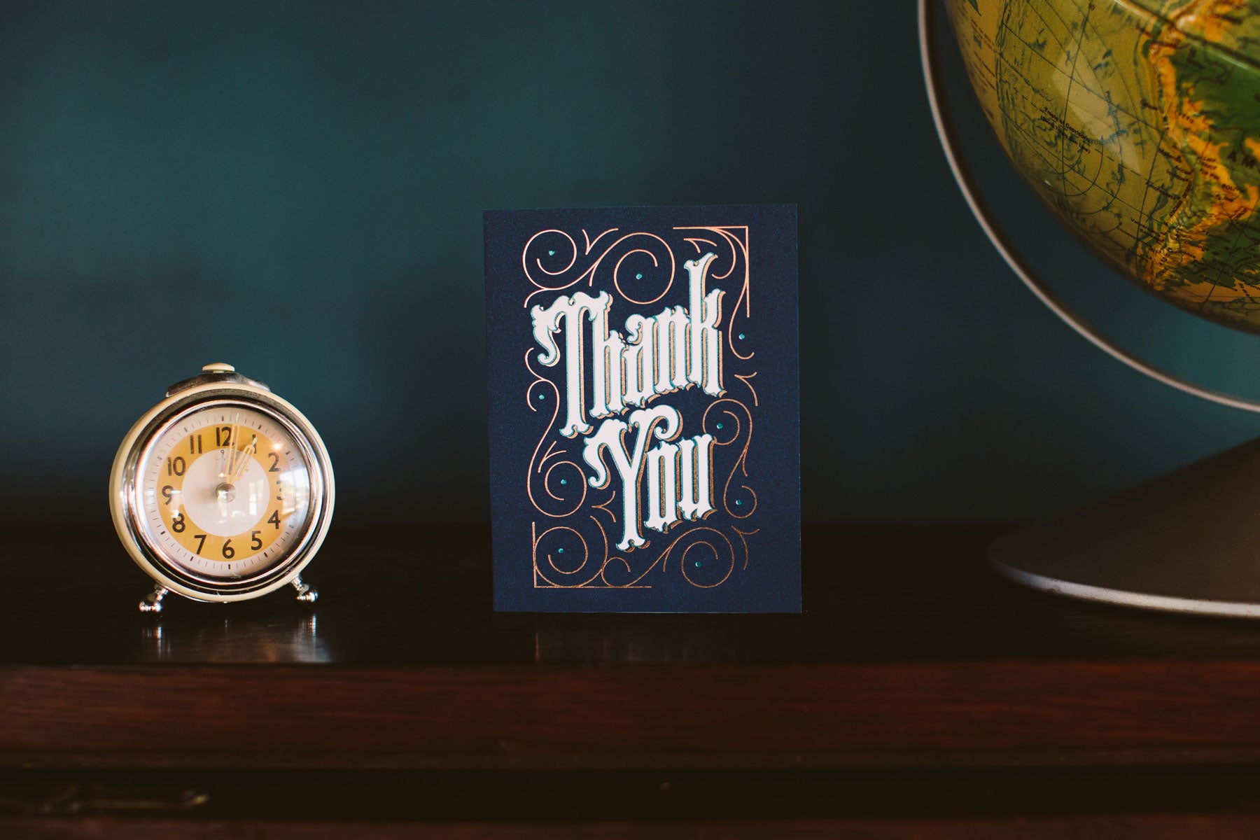 Letterpress printed in Troy, NY on Mohawk Superfine paper with shiny, metallic foil accents and white envelope. You're welcome.